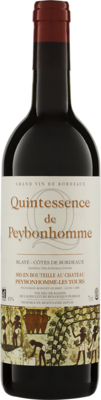 2016, 'Quintessence de Peybonhomme' Blaye - Côtes de Bordeaux AOC, Château Peybonhomme € 16,00 auf Lager Sauerkirschen, Heidelbeeren, etwas Kräuter, etwas Pfeffer, am Gaumen die ganze reiche Aromenpalette, noble Konzentration, griffig und von angenehm mittlerem Gewicht, vitale, saftige Säure und feines Tannin;komplexer, bestens strukturierter Wein für kräftige Speisen; extrem niedriger Ertrag (25 hl/ha) aus fast 60 jährigen Stöcken, nur bestes Lesegut des gesamten Gutes; 2016 gilt am rechten Ufer als Spitzenjahrgang, wirkt jetzt schon trinkreif, wird mit den Jahren gewinnen, Potential von mindesten acht bis zehn Jahren; | |